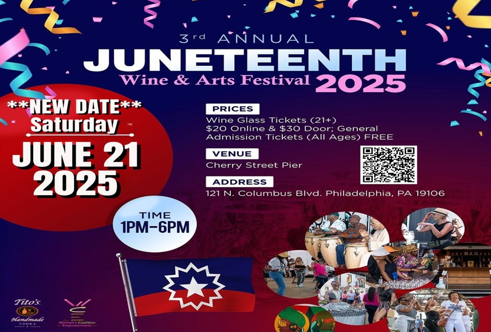 The Women's Coalition for Empowerment, Inc., in partnership with the Delaware River Waterfront Corporation, for the 3rd Annual Juneteenth Wine & Arts Festival, celebrating Juneteenth and Black culture through wine tastings, art exhibits, and live music performances.