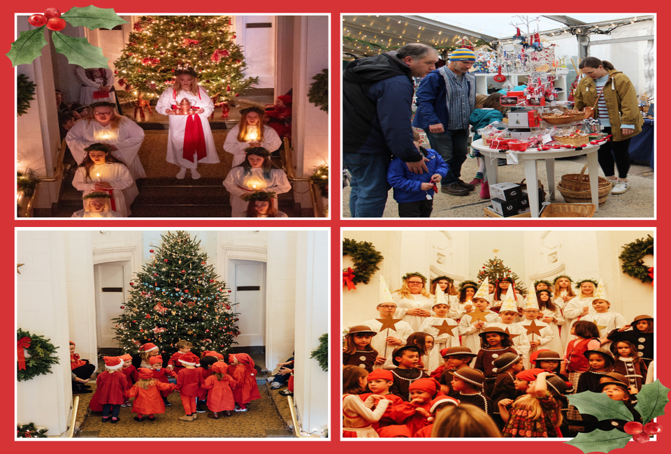 The Market will take place in our heated tent outside, and Lucia performances will be in the Grand Hall. Shoppers can enjoy the day, rain or shine!