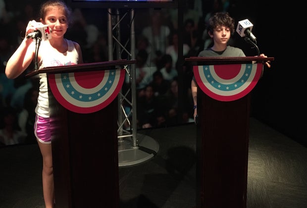 At the entrance, children can choose to take an activity packet and hunt for answers to their election history scavenger hunt while enjoying the exhibit. My meticulous daughter loved this but my son was more content to hop from one room to another, not necessarily in order, so the scavenger hunt wasn't for him. Once inside, kids will learn everything about the election process including landmark historical events from previous elections. The exhibit is designed for children to be actively involved and engaged. Your young office-seeker will join the race and earn the party nomination! Highlights of this section include an activity to craft your own campaign message and a design-your-own campaign button activity. Also included is historic footage from Democratic and Republican National Conventions and a "campaign worker chart," which explores the roles of everyone on a candidate's staff. Younger children might need help with some of the activities but older kids can definitely move throughout at their own pace and handle the activities on their own.