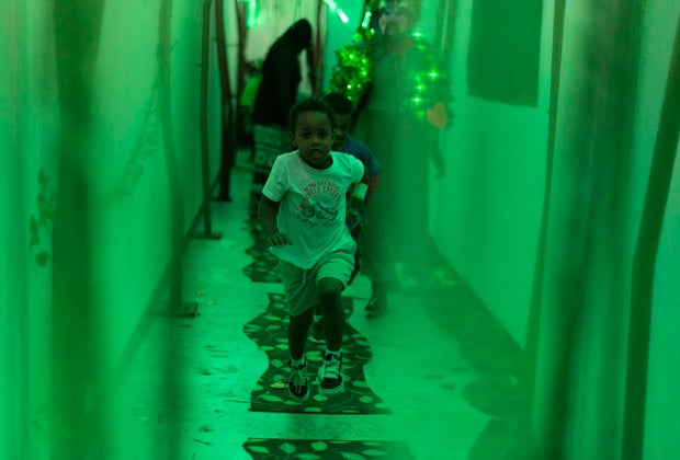 I wanted my 2.5 year-old to love it, but it was a little too intense for him and a handful of other younger children. He spent most of the show scared in my arms after the hero popped out from behind some of the theatre seats. Be aware that certain rooms are very dark and the music is pretty loud and intense, so younger kids might find it a bit scary. The theatre recommends the show for kids ages 4-8, but use your descretion if you have a little one who tends to be jumpy. The theatre also has sensory-friendly shows on August 19th and 25th, which you may want to opt for if you have smaller kids who might be scared. That said, I was really proud of my son for pushing through and being brave, and, despite being scared, he was still intrigued and participated in a few parts of the show. Ideally, kids will go through the experience independently with parents tagging along and participating behind them, but feel free to stay with your kid if they need you.
