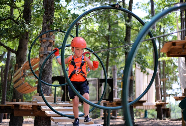Note: All zip lines and adventure courses require signed waivers, and most require harnesses. Before heading off on your adventure, pay attention to height, weight, and age restrictions. Not all parks offer experiences for young children. Go online or call ahead for reservations.