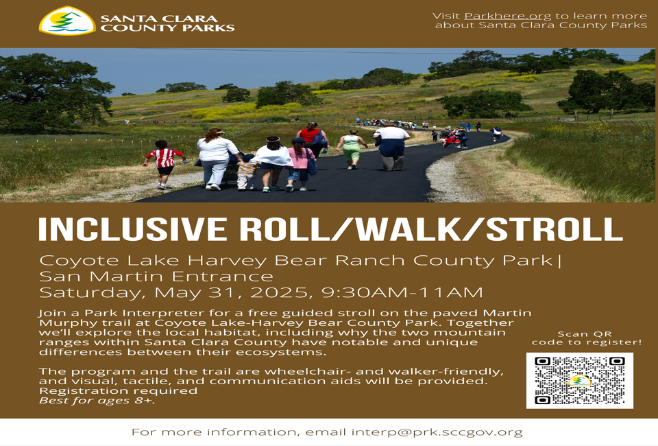 Join a Park Interpreter for a free 2-mile guided stroll on the paved Martin Murphy trail at Coyote Lake-Harvey Bear County Park. Explore the local habitat, including why the two mountain ranges within Santa Clara County have notable and unique differences between their ecosystems.