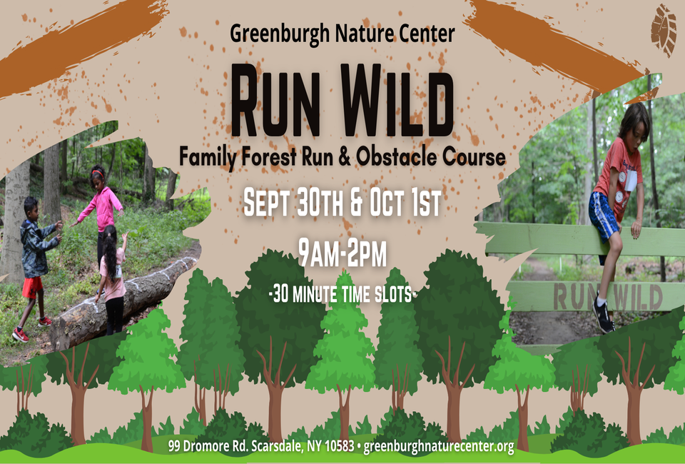 Run Wild takes place rain or shine from 9am - 2pm: 30-minute time slots. Tickets are available for purchase on the website: https://greenburghnaturecenter.org/run-wild/