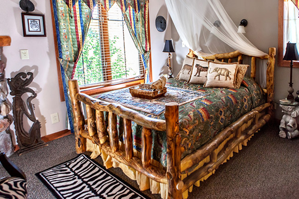 Stay in a uniquely themed guest room, like the Safari Room, at The Lodge at Grant's Trail. Photo courtesy of the lodge