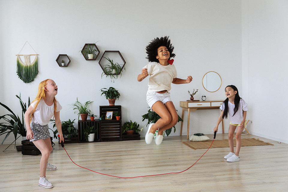 Jump rope is one of those perfect games to play with friends and siblings at home. Photo by Monstera via Pexels