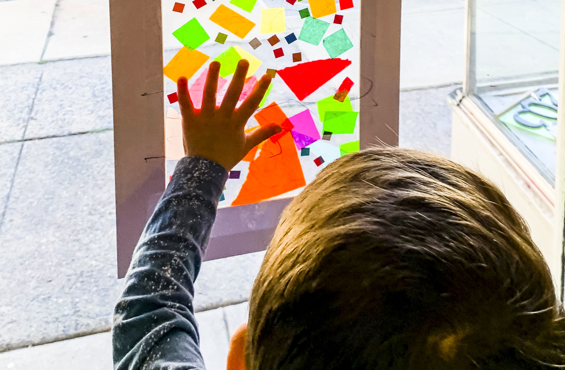 Explore natural light by making a simple and colorful sun catcher and placing it on a window.