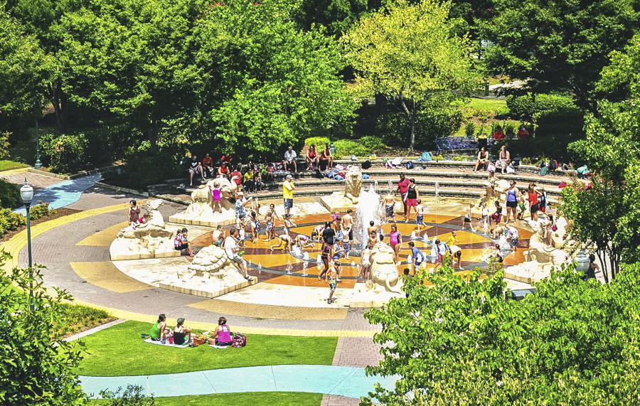 Cool off at Coolidge Park's giant splash pad. Photo courtesy of visitchattanooga.com