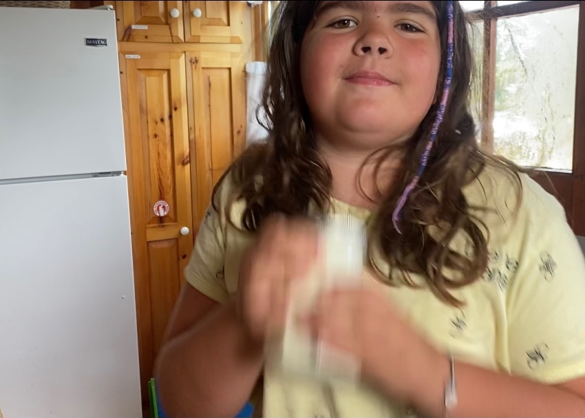 Shake! Shake! Shake! This is the fun part. Let kids shake the jar! Keep shaking until you feel the cream thicken and coat the jar—then shake some more. Our jar took about 30 minutes. A baby food jar will take about 10 minutes. You can also roll the jar back and forth on the floor with a partner, gently rolling it to the other. While you shake, let the kids take a peek in the jar to notice the changes in the cream.