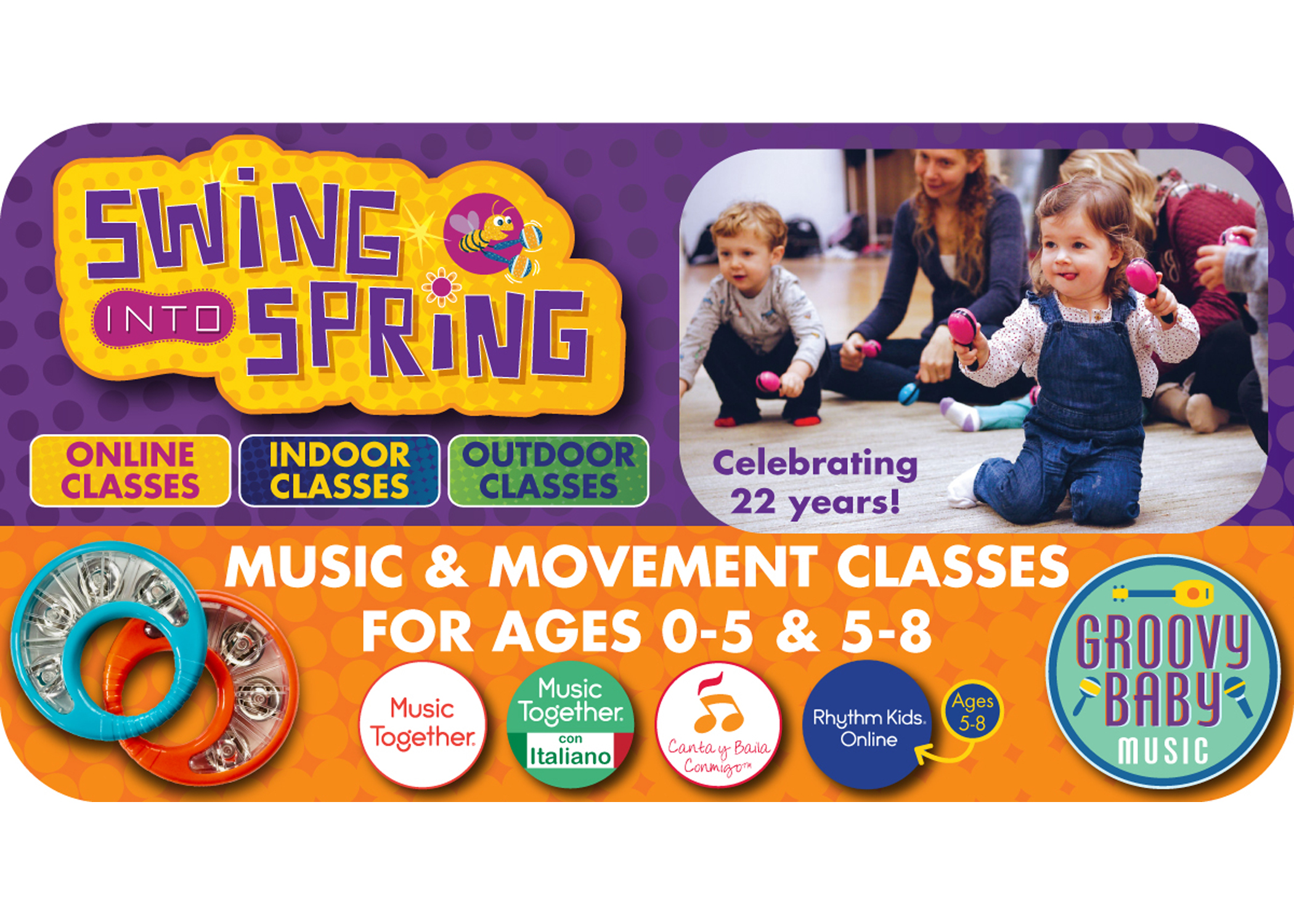 Get ready to join your Groovy Baby for this fun, enriching online Music Together class. In this introduction to music and movement, participants sing, dance, move, groove, and jam with instruments each week with lessons that are well-planned, engaging, and fun.