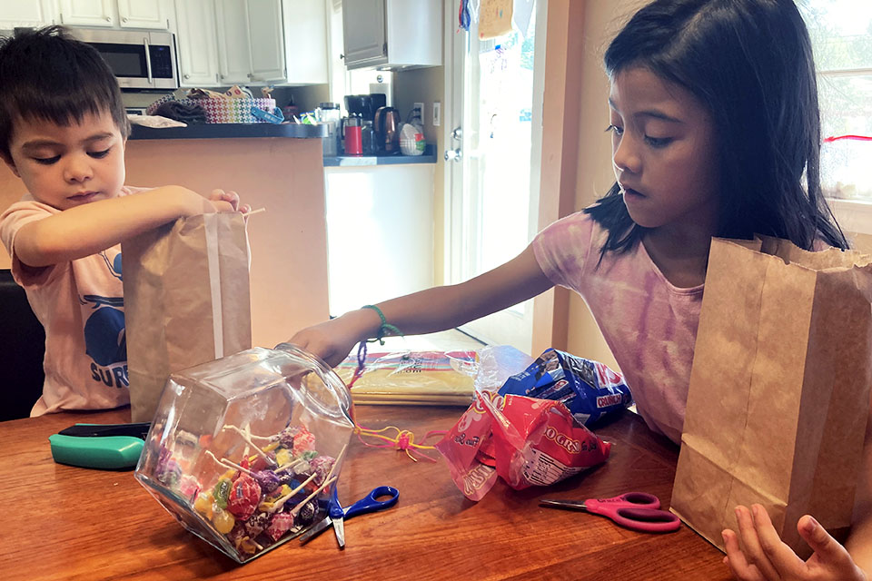 Start with the best part—the candy! Be sure to fill the bag only about halfway.