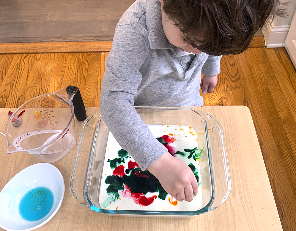This wizardry is as magical as it is simple. Add a few drops of food coloring to a dish of milk. Swirl a cotton swab in some dish soap, then dip the swab into the milk. Watch the liquid whoosh away from the soap, taking the colors with it to create a rainbow of swoops and swirls.
