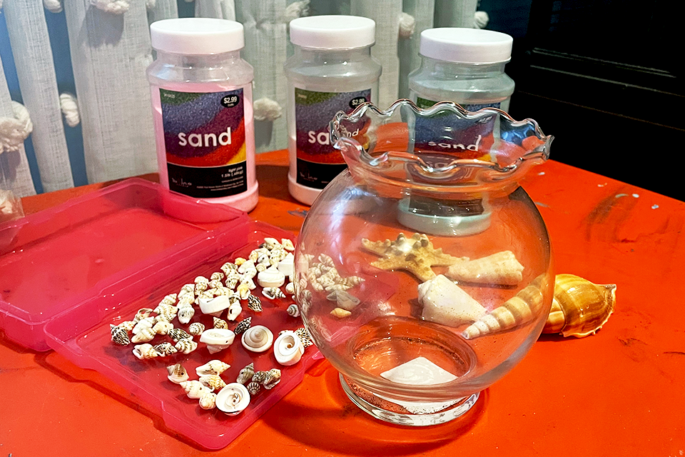 Instead of using a jar to create a terrarium with an air plant and moss, put sand and seashells inside. This also makes a beautiful centerpiece for tables. Get as intricate as you like, adding miniature figures, sea rocks, or tiny umbrellas. Use sand collected from the beach or get creative with colored craft sand.