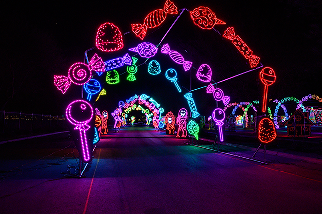 Take a trip to Candy Rush Light Show, the world's largest animated drive-through. Photo courtesy of World of Illumination