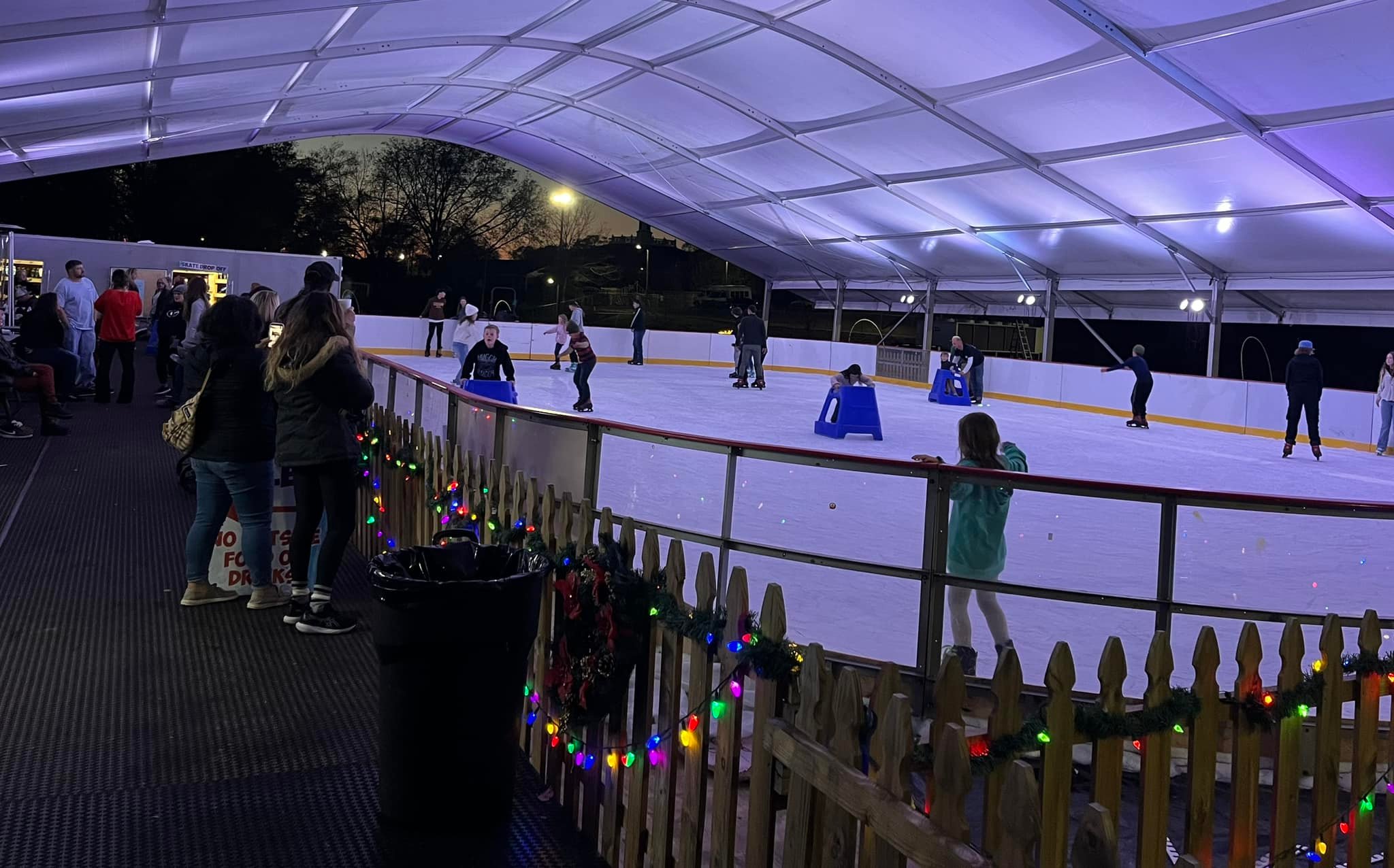 The Covington ice skating rink at Legion Field offers real ice and is covered by a pavilion so it never closes due to rain. They also offer a concession stand with yummy snacks like hot dogs, nachos and hot chocolate. Kids don't even have to remove their skates!