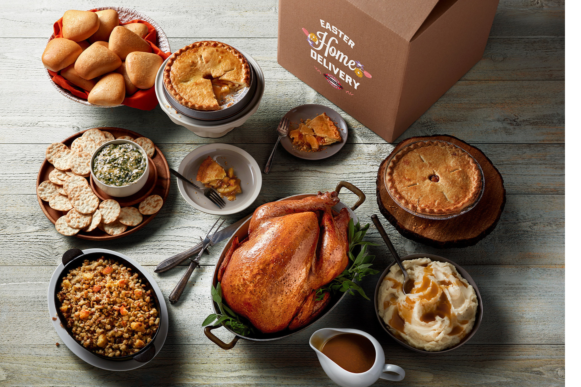This year, Boston Market is doing family-style Easter meals featuring ham or turkey (or both!) plus sides and desserts for up to 12 people. Meals are available to pre-order for pickup between April 10 and 12. Better yet, if you order by April 8, you can have your meal delivered to your door.