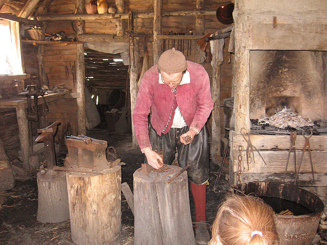Blacksmiths, woodworkers, and artisans go about their business throughout the property. Photo courtesy of Gabrielle Cyr, Flickr/2.0