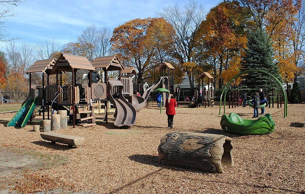 There's plenty of room to roam and play king or queen of the castle in this unique play area in the far northwest 'burbs. Separate structures for big kids and little ones (there's a well-designed tot lot) make it a place where siblings or family-friends of various ages can be happy. Best of all are the little corners and caverns amid the turrets where epic games of hide and seek or "house" can keep children busy for hours. Portable potties are a bonus not often found in suburban play areas.