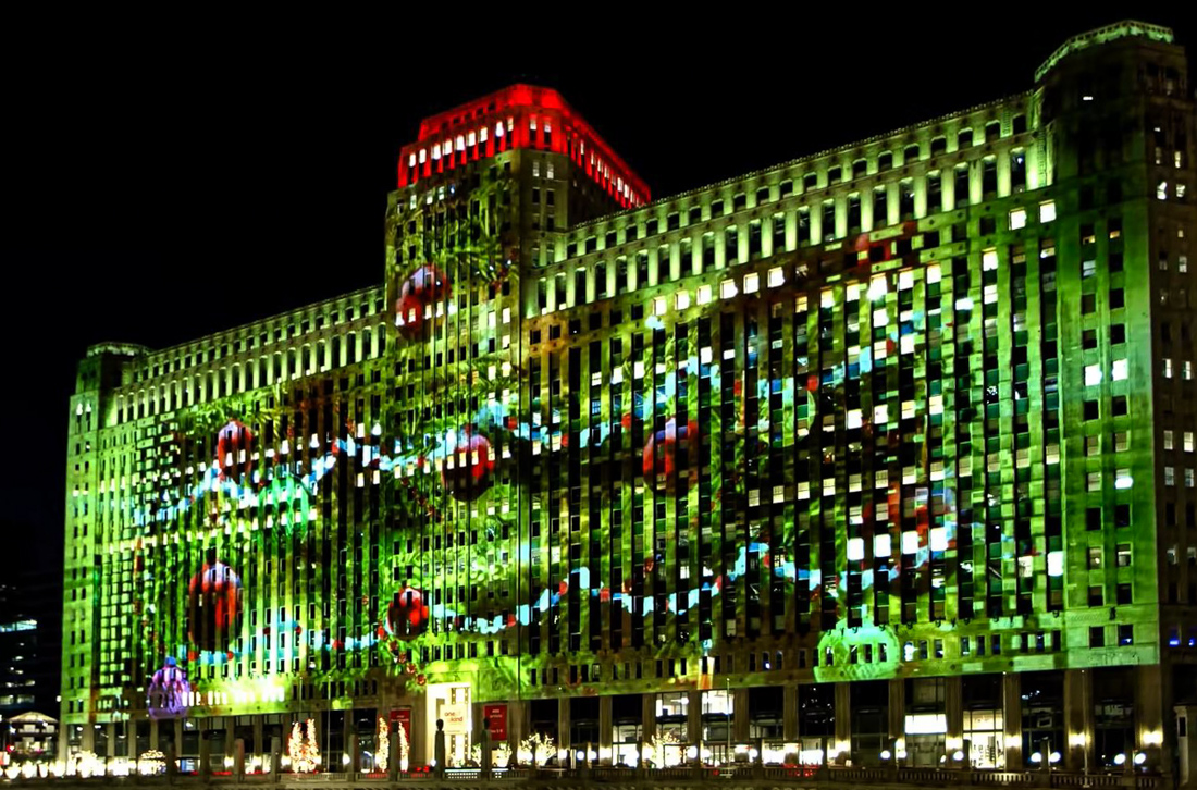 The nightly show is on this holiday season at The Merchandise Mart, featuring Arts of Life and images and music from The Nutcracker.