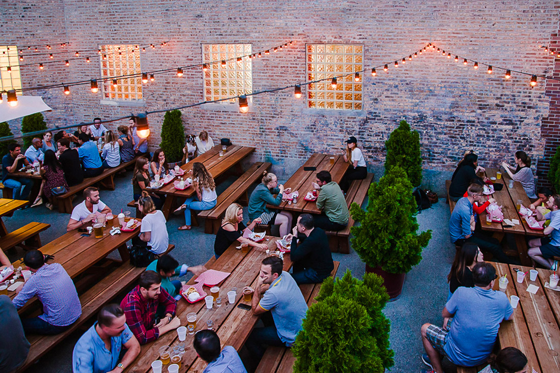 Paradise Park is a whimsical place to grab a slice of pizza. With eclectic outdoor furniture, swings, and flamingos, you’ll feel like you’ve been transported into the coolest park/campground in Chicago.