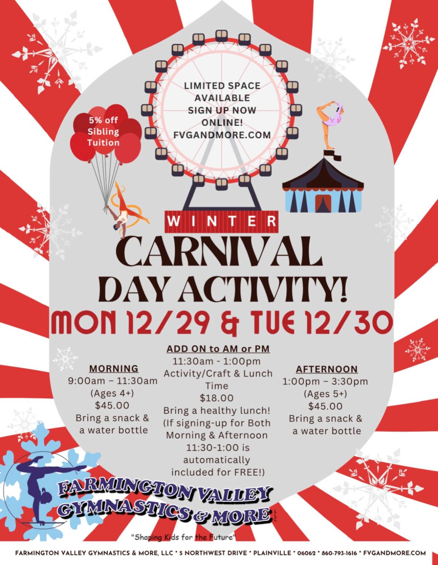 Come join FVG for their Winter Carnival Activity days. Half and full day options available and they still have plenty of openings!