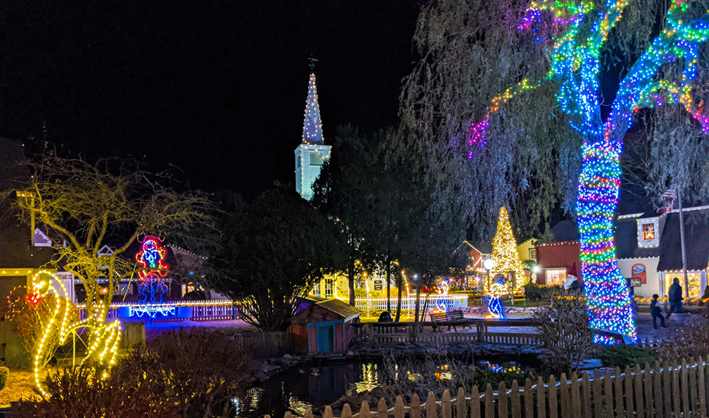 Over a half-million lights will decorate the Olde Mystic Village square of shops and restaurants for families and holiday enthusiasts to enjoy. Parking is also free. Stroll around the Village with your leashed pet even after stores and restaurants are closed.