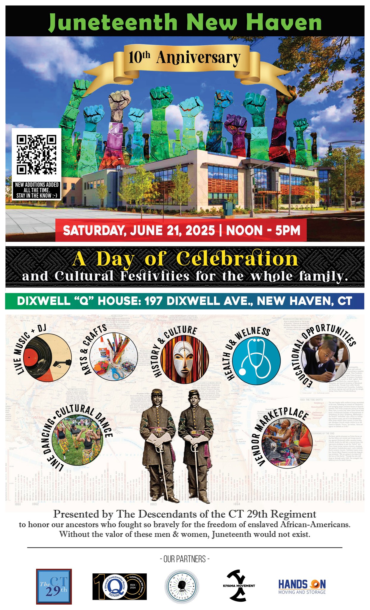 It's Juneteenth New Haven’s 10th Anniversary—a powerful, authentic celebration presented by The Descendants of the CT 29th Regiment, honoring the legacy of one of the most heroic Black military units in U.S. history. Their bravery helped secure freedom for enslaved African Americans—and without them, there would be no Juneteenth.