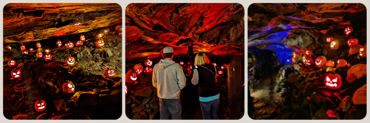 This October, celebrate the Fall season underground with “Light into the Dungeon” a wholly unique walk-through illuminated by over 300 Jack O’ Lanterns. Explore the 100-yard loop of the underground copper mine lit by a display of professionally carved Jack O' Lanterns.