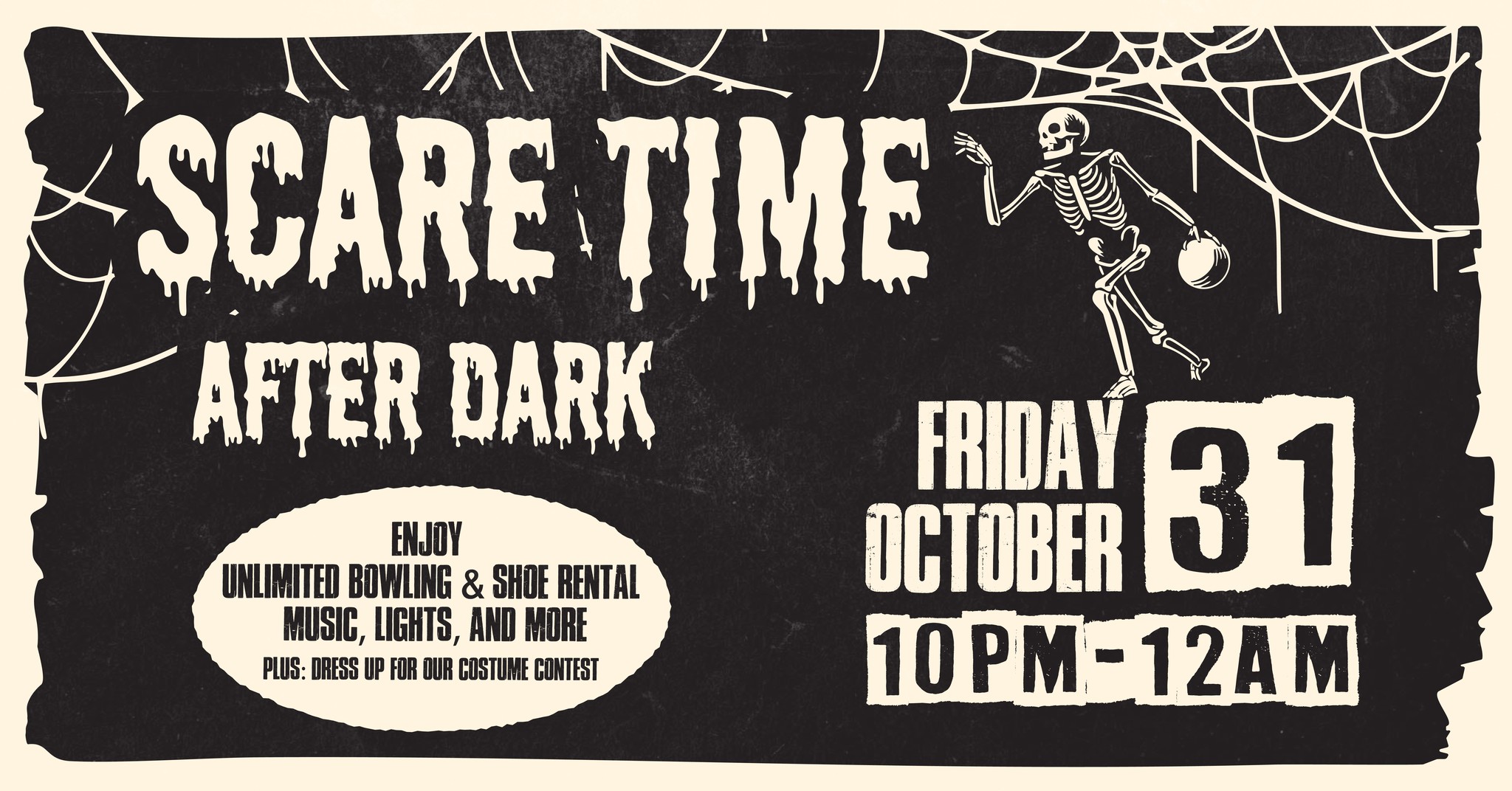 Spooky, Scary Skeletons… It’s Scare Time After Dark! Join Spare Time for a special Halloween edition of our ultimate late-night party.