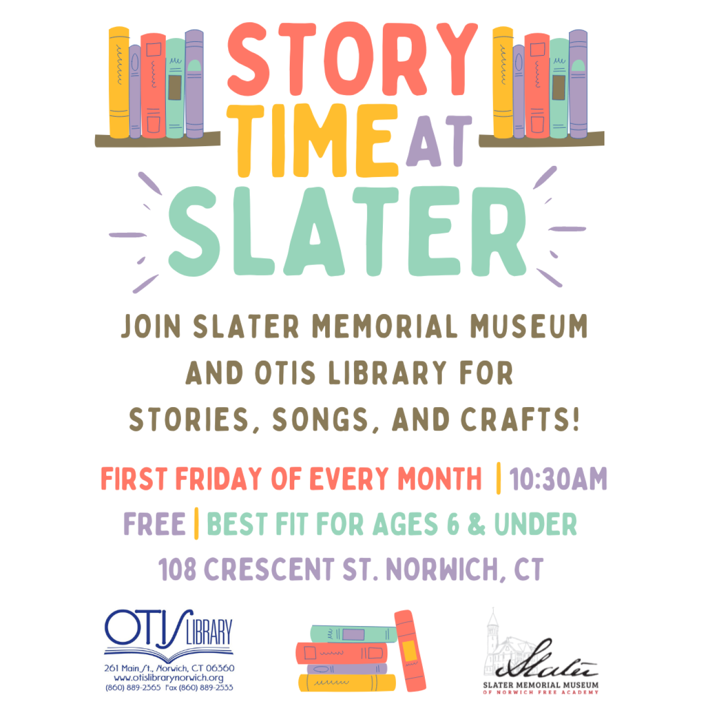 In partnership with the Otis Library, join Slater for story time inside the museum! At each story time children can expect stories, songs, crafts, and a chance to get up close to objects from the museum’s collection.