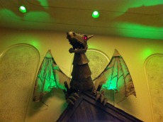 But what came after certainly excited her. We were ushered into the vestibule, which had been transformed into a temporary museum with models of the set, original costumes, masks, props and other paraphernalia. It was amazing to see all of these items up close. The level of detail is stunning. Little things you'd never notice from the audience, like the bits of lace and red velvet in Elphaba's dress, can finally be appreciated. Our guides told us a bit about how everything was made, and answered any questions we had about the items on display. My daughter just wanted to know how much the big green hat cost. (She was disappointed to hear it wasn't for sale.)