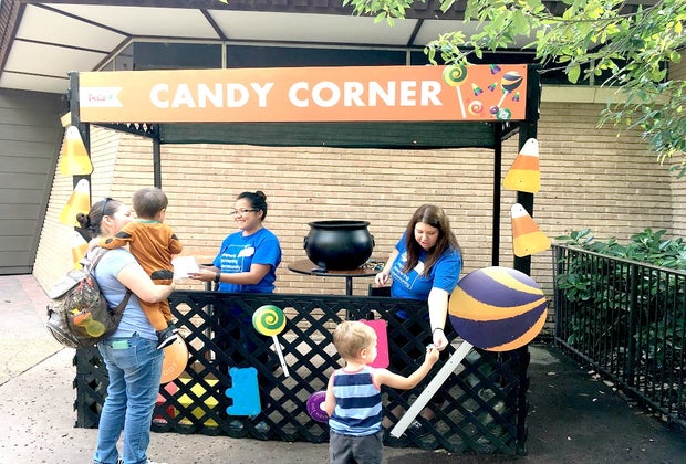 You'll definitely want to bring your candy bag on this trip because there are Candy Corners located at random stops around the zoo where kids can go and trick or treat for a couple pieces of candy. This was the first Zoo Boo-related stop we found, and while I don't normally agree to candy before lunchtime, there was no saying no to my ecstatic son once he had it in his hand. When in Rome, right? Be prepared for a sugar-fueled day! The corners are available all day while supplies last.