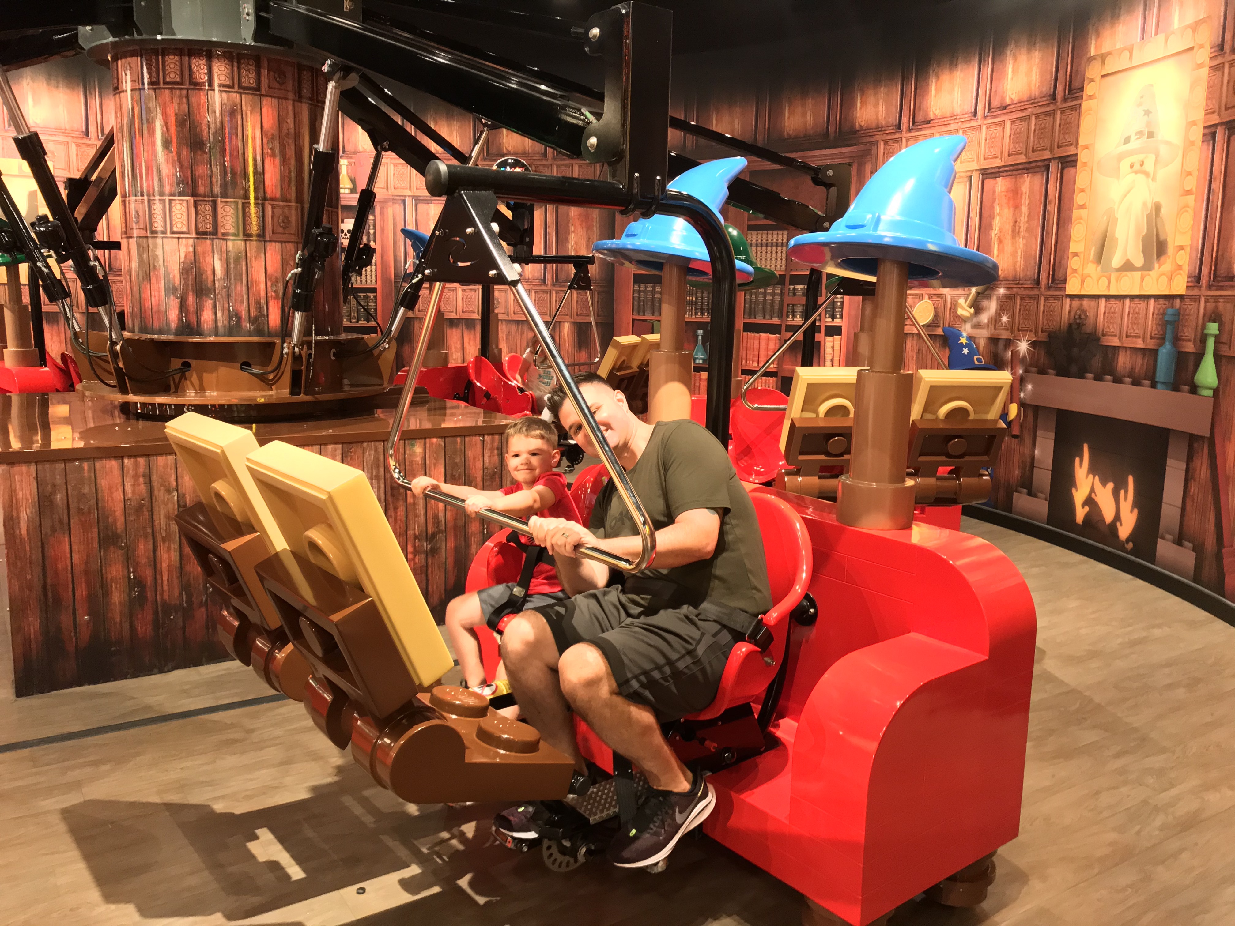 Our favorite ride in LEGOLAND Discovery Center was Merlin’s Apprentice. This carnival-type ride takes riders taller than 3’ on a magical journey up, down, and around, flying through the air while pedaling an enchanted cart. The faster you pedal, the higher your cart goes. We rode it several times giggling and laughing the entire time, and there was never a line. We just hopped off, walked around to the entrance, and hopped right back on.