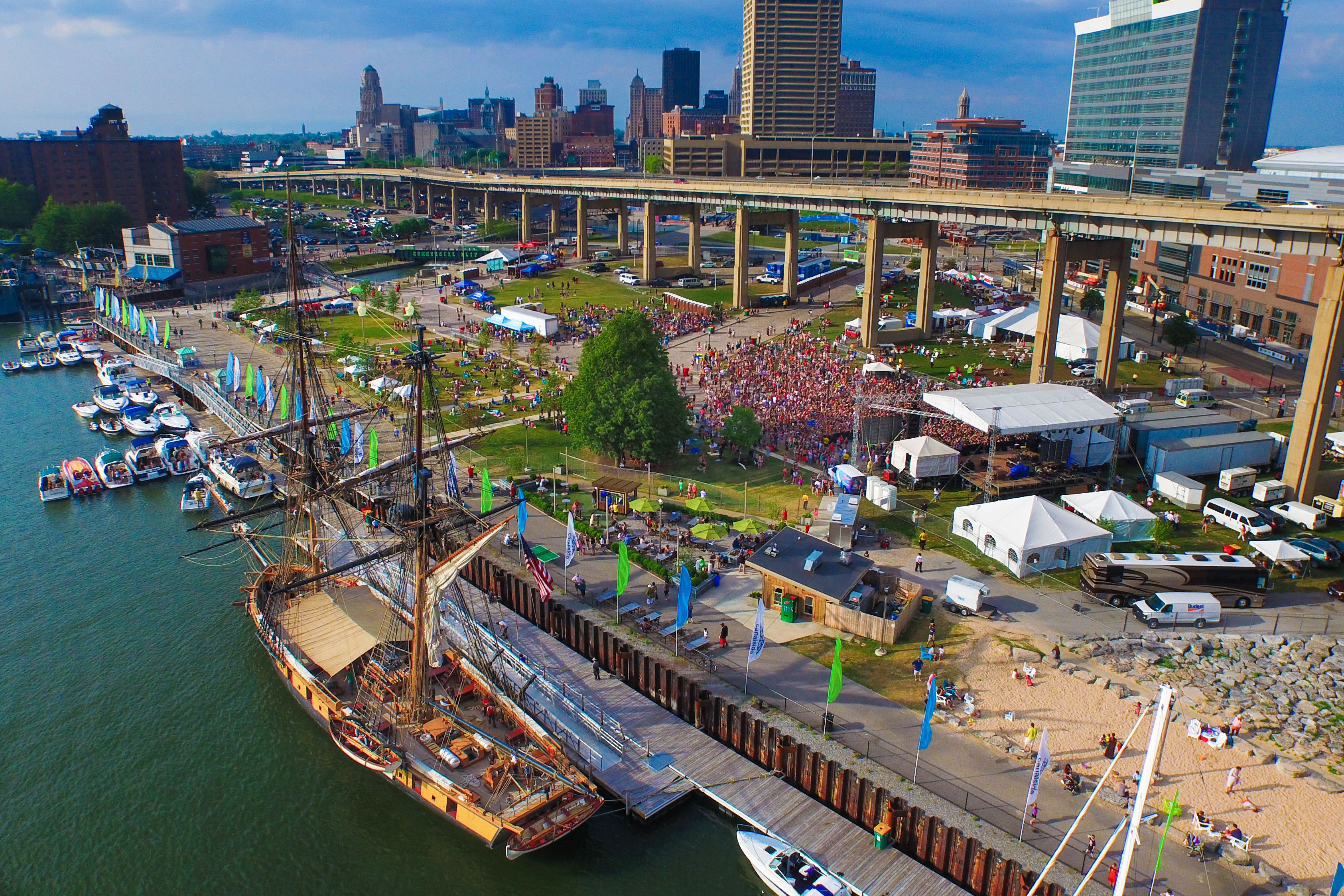 Visit the Naval & Military Park within the Canalside waterfront area to explore decommissioned warships. Photo courtesy of Buffalo Aerial Pictures.