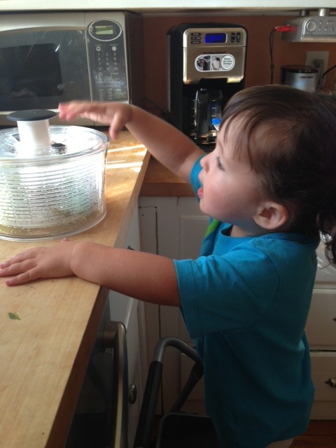 One of the biggest obstacles to cooking with kids for me has been a safety concern: we have a smallish kitchen, sharp knives, and a gas stove. But there's lots of food prep that kids can help with; with a solid step stool and some adult supervision, they'll learn fast. Think about it as an investment in a future sous-chef. And kids who feel involved in the process of making a salad might just eat some of it (maybe).