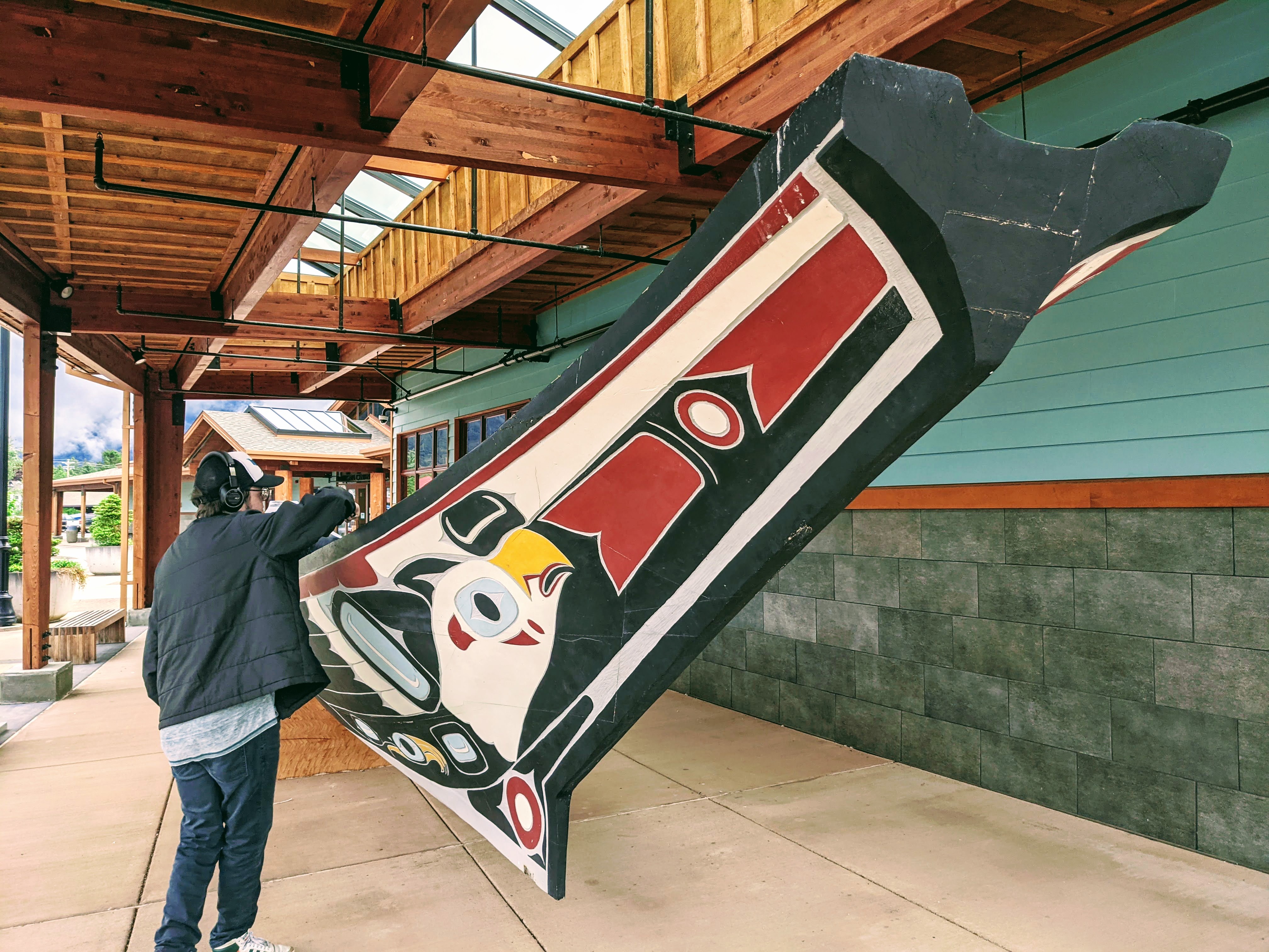 Behind the visitor center at the Sitka National Historic Park, you might catch master carver Thomas at work.