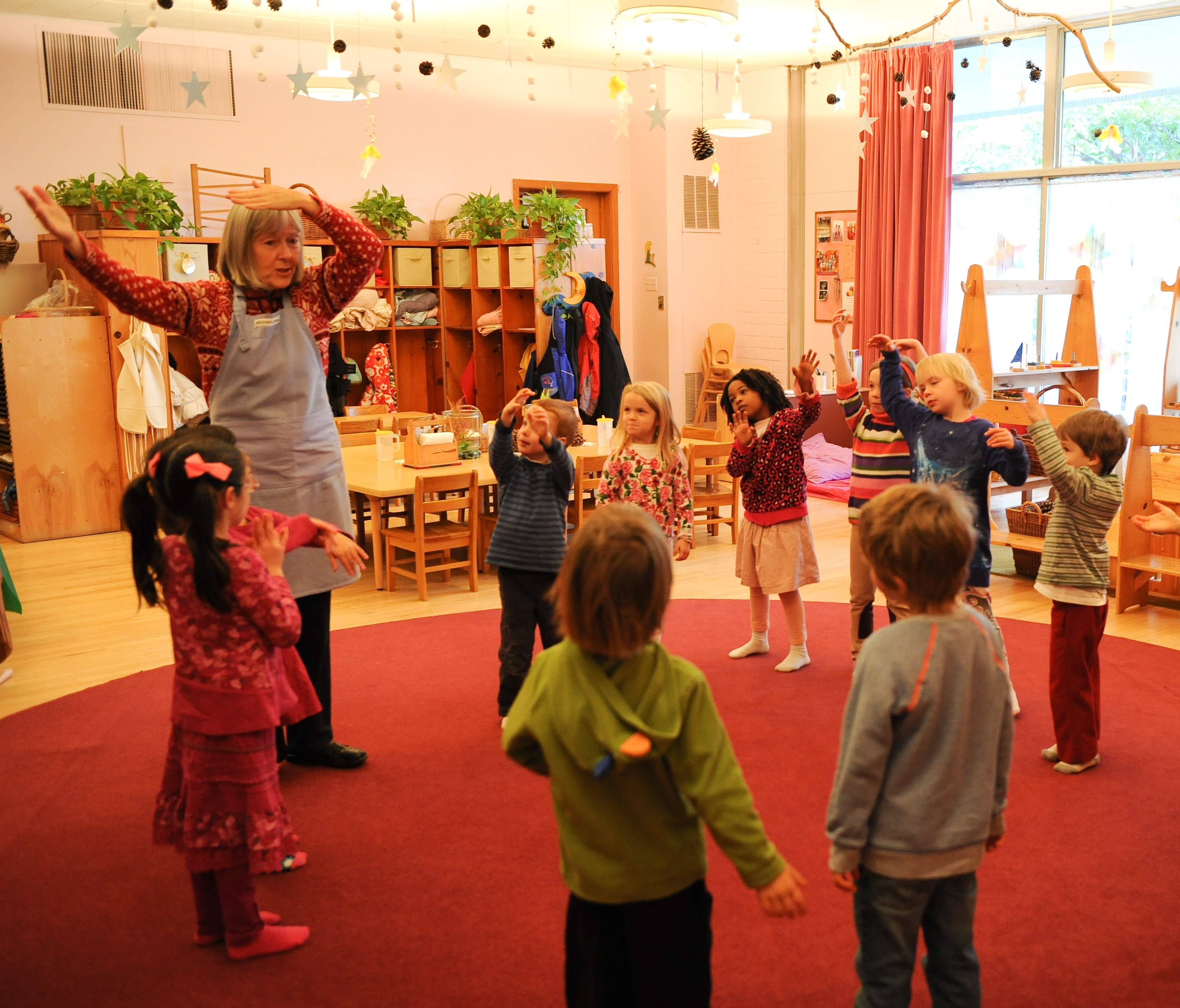 The school embraces a slower-paced, more rhythmic approach to education, with two-year nursery and kindergarten programs. The non-traditional curriculum is teacher-centered, where the instructor models behavior for the children to emulate and educates through nurturing rather than instructing. While reading and the alphabet aren't taught at this age, storytelling, the first step to becoming a reader, is an integral part of every day. Music, movement, and outdoor play are also emphasized, and all toys are made of organic materials. Snacks are organic and unprocessed, too, and the children even help to prepare many of the foods served, such as fresh bread, oatmeal, and soup made with vegetables from the garden. On Wednesdays, food harvested at the school is sold to the parents at a farm stand.