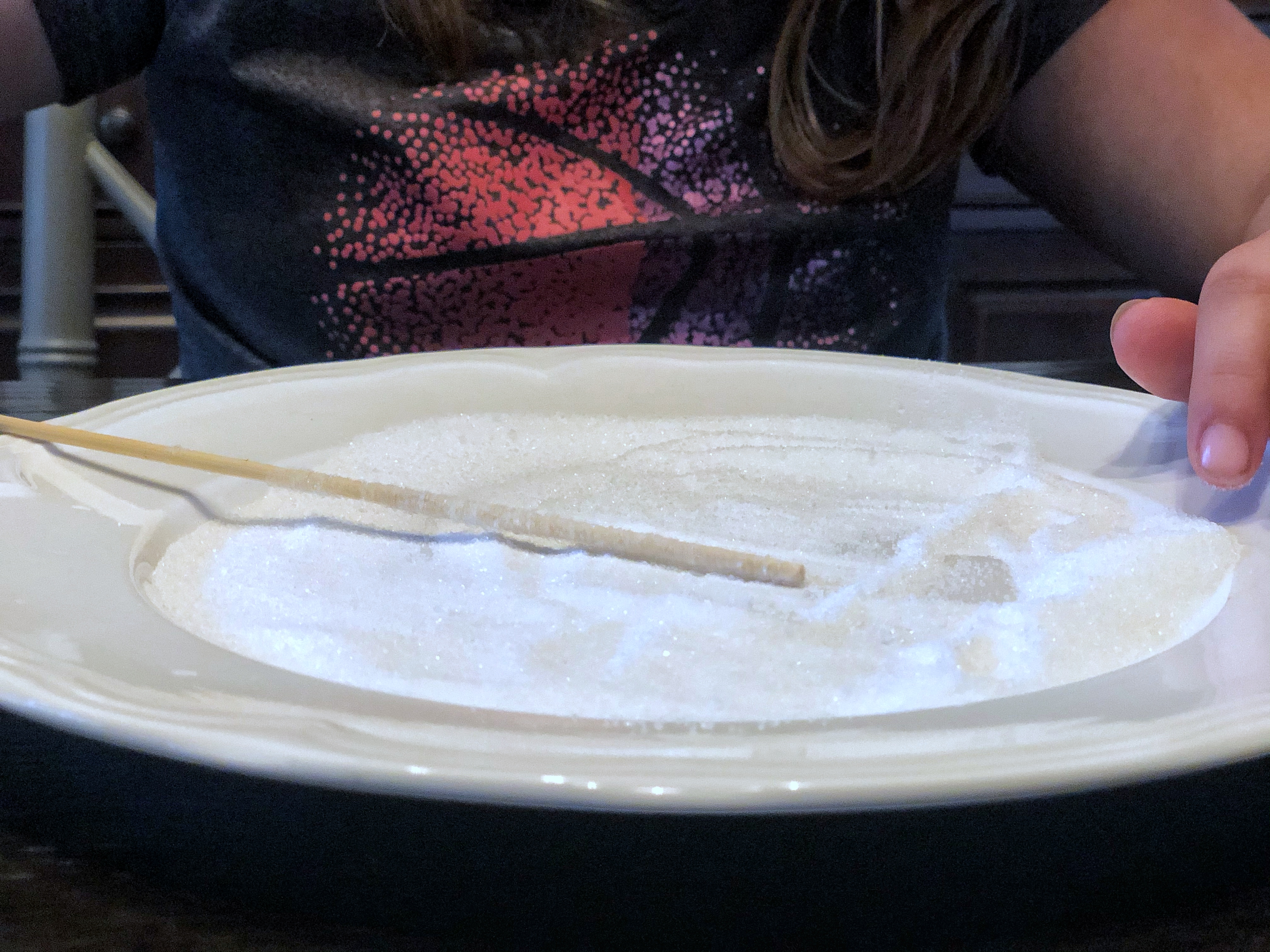 While waiting for the solution to cool, prepare your wooden sticks for growing the rock crystals. Wet the wooden sticks and roll them around in granulated sugar. Make sure you allow the sugared sticks to completely dry before continuing to Step 4. You'll need one stick per jar.