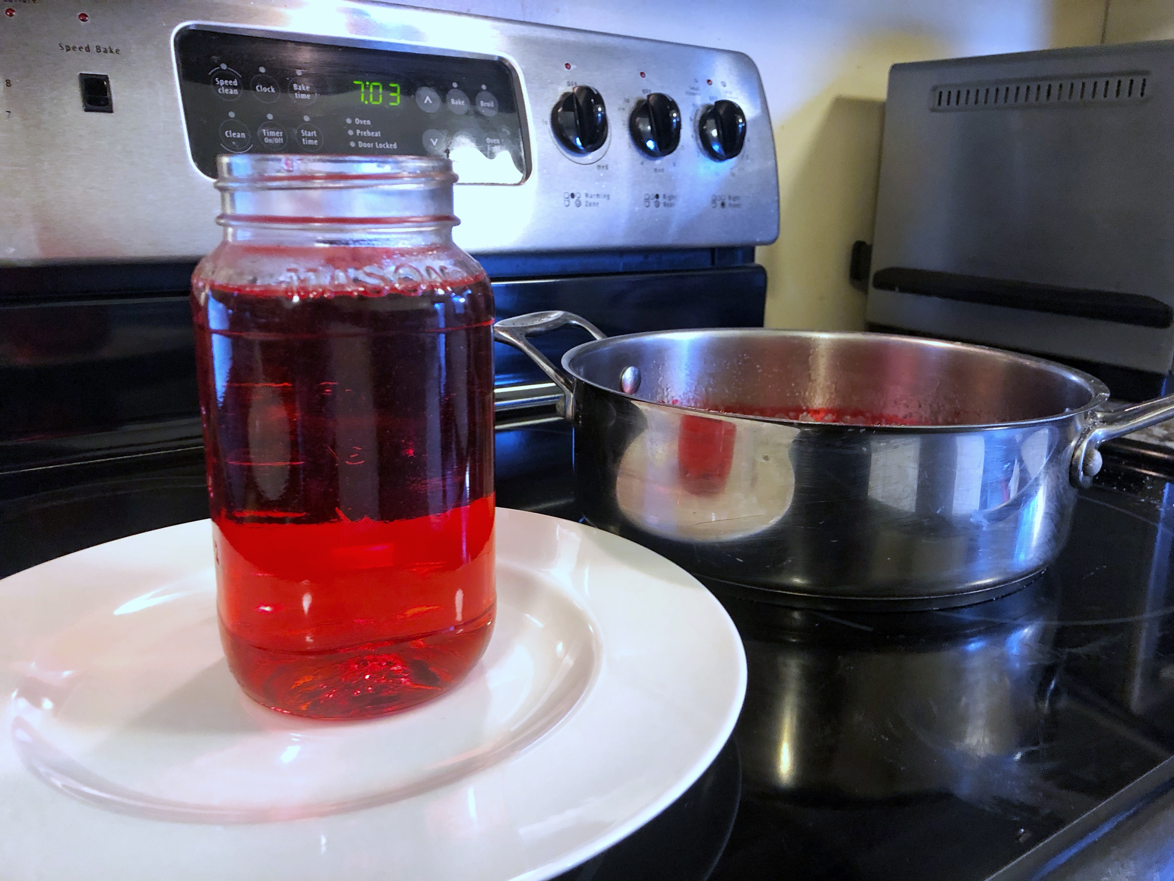 Once the sugar solution is cool, add in food coloring to create rock candy of your preferred color. Leave this step out for clear-colored crystals.