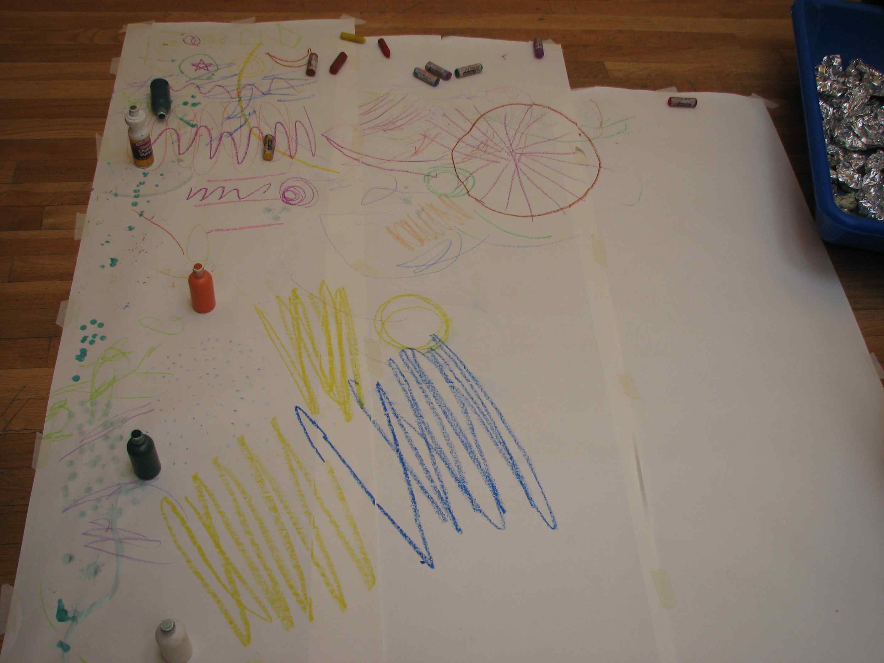 A big bin full of sand, shovels and buckets also provided lots of entertainment and my 7-month old watched in awe as kids played with a mountain of tin foil scraps.