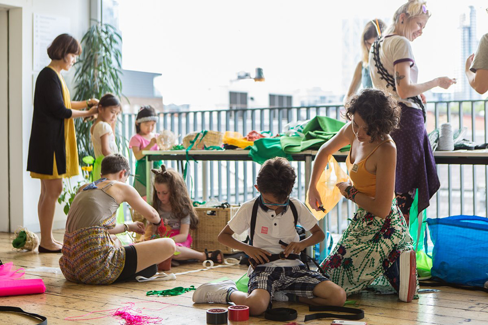 The Art Lab is an interactive space where kids and adults can engage with Queens Museum exhibition topics and express their creativity. Visitors to the Art Lab not only get to look at art, but also write, draw, and discover the topics on their own. Activities cater to a diverse cross-section of Queens Museum guests with materials provided in English, Spanish, Bengali, Mandarin, and even braille.