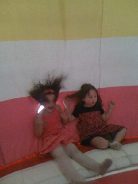 Unlike most bouncy houses that have mesh walls so you can keep an eye on your children from the outside, the onion zips shut. Once the kids are in, you can't see them, just hear them. From the sounds my daughter and the other kids were making, they were having an awesome time. A staff member at the entrance made sure no more than five people went in simultaneously. Adults are allowed to enter and are in fact encouraged to do so. I joined my daughter on her third visit. Inside, it's almost impossible to stand. The floor is so unstable you instantly topple over, so be prepared to bounce.