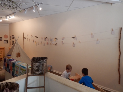 The open space has a variety of play areas, including mini versions of a gas station, flower shop, supermarket and play house, as well as a small slide and a super-cool tee pee (the boys’ favorite). And while I got a kick out of seeing my kids playing, my favorite part of Sandbox is the wall of inspiration for parents. Moms and Dads leave words of encouragement or wisdom for one another, such as “Remember to breathe” and “Put down your camera and enjoy the moment.” If you see one you like, you can feel free to take it and you’re encouraged to leave one in its place.