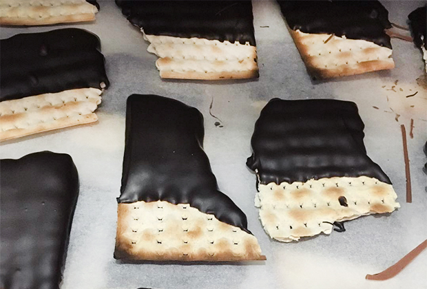Candy fans: We dare you to pass on a chocolate-dipped matzo from Kron's in Great Neck.