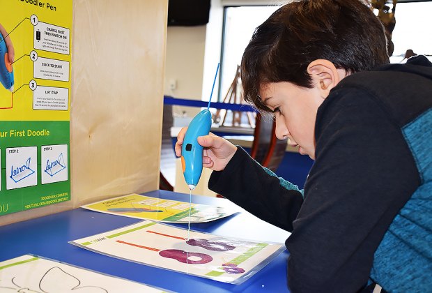 Kids can create 3-D artwork at the Long Island Science Center. Photo by Jaime Sumersille