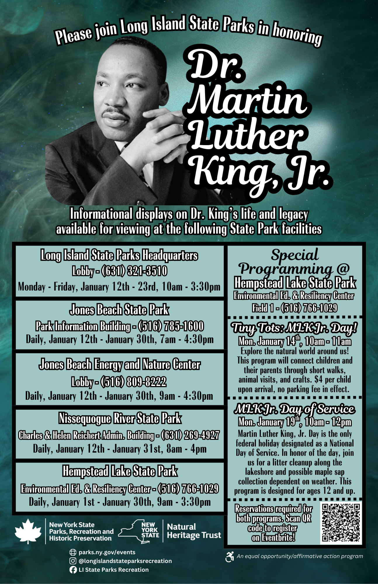 The New York State Office of Parks, Recreation and Historic Preservation celebrates Dr. Martin Luther King, Jr. at Long Island State Parks throughout the month of January.