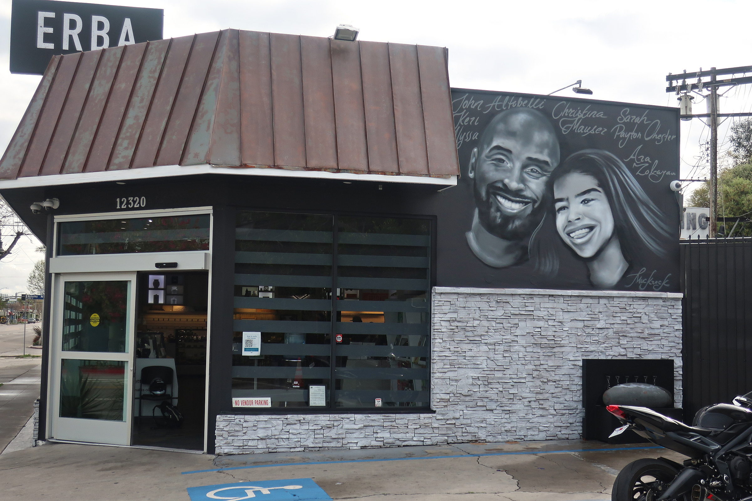 While there are dozens of murals throughout greater LA that pay tribute to Lakers' legend Kobe Bryant, I think one of the most moving pieces is the simple, black and white display of Kobe and his daughter Gianna on the wall at Erba Market (12320 Pico Blvd.).