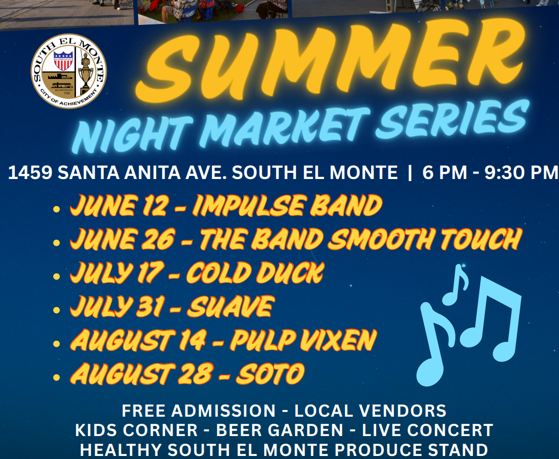 It's more than just a concert! Families can make a night of it at South El Monte's Summer Night Market series. The evenings include local vendors, a kids corner, a beer garden, and yes, a free, live concert.