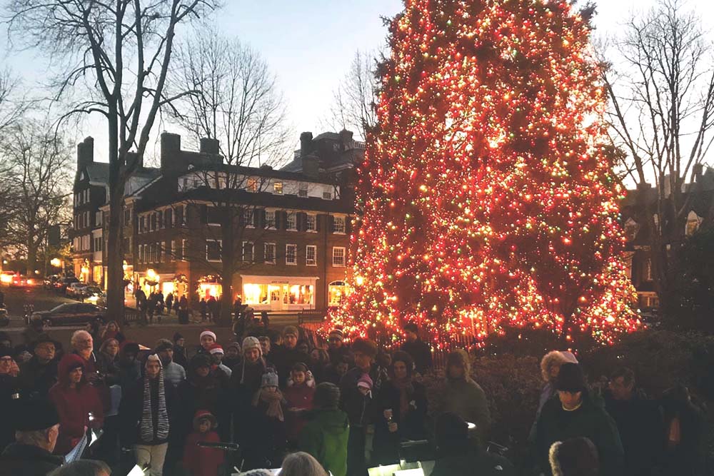 Gather around on the Palmer Square Green to sing holiday songs. The Palmer Square Christmas Eve Brass Band leads the festivities, and attendees can expect a special visit from Santa after caroling.