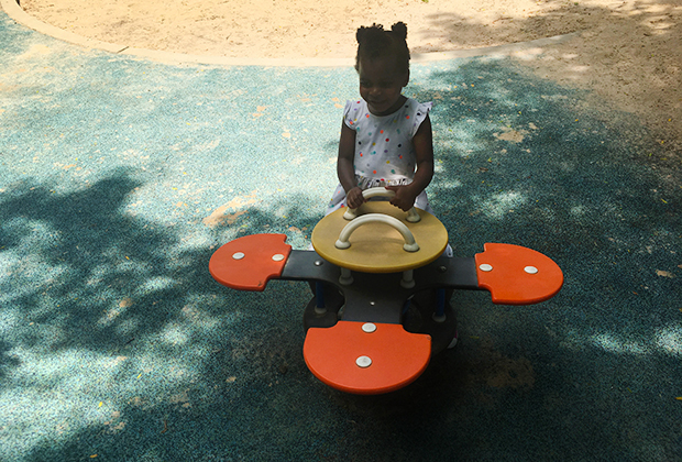 With my daughter growing frustrated with the way-too-advanced play equipment, we headed over to the toddler playground for tamer fun.