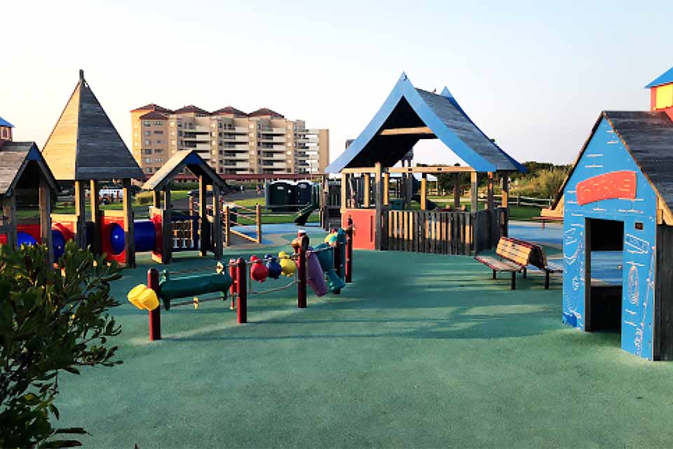 For a memorable day in the sun, it's hard to beat Tony's Place. This huge playground is just a two-minute walk to the beach. It boasts several bucket and chair-style swings, tunnels, sea animal-inspired climbers, a music station, and more. The spongy, rubberized flooring makes it safe for anyone to enjoy.
